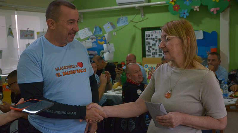 -Ja vam se zahvaljujem što nam svaki 11.septembar učinite lepšim i radosnijim. Zadovoljstvo nam je svaki put da ugostimo učesnike Balkan relija, deca se zaista raduju kada ih vide ovako sa motorima u dvorištu, a pokloni su posebna priča – rekla je direktorka Filipović.