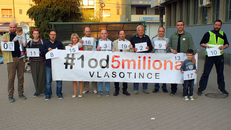 U subotu 6. aprila održan je jubilarni 10. protest 1 od 5 miliona, ispred opštinske zgrade u Vlasotincu. Učesnici i organizatori ne odstupaju od svojih zahteva i traže razgovor sa predstavnicima vlasti o svim otvorenim pitanjima.